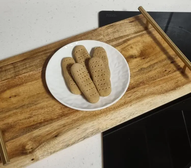 3. 30g으로 소분 후 둥글게 굴린 후 납작한 막대기모양으로 만들어줍니다.