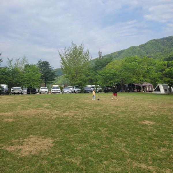 숙소 앞에는 넓은 천연 잔디 운동장이 펼쳐져 있습니다.