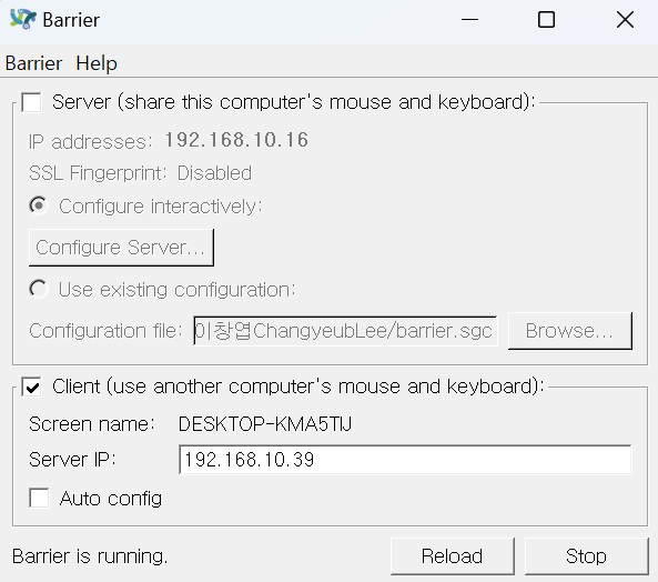 - Client (Use another computer's keyboard and mouse) 선택
