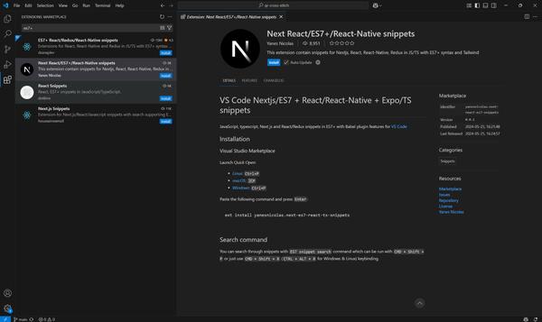 VS Code는 풍부한 확장 프로그램 생태계를 갖추고 있습니다. Next.js 개발자에게 추천하는 필수 확장 프로그램은 다음과 같습니다: